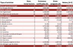 A Catalunya, les 95 instal·lacions incloses en l’RCDE han emès en total 12.840.009 tones de CO2 eq, xifra que suposa una reducció de 233.528 tones de CO2 eq respecte de l’any anterior, un 1,79% menys. Aquestes instal·lacions són les responsables d’aproximadament un 30% de les emissions de GEH de Catalunya.