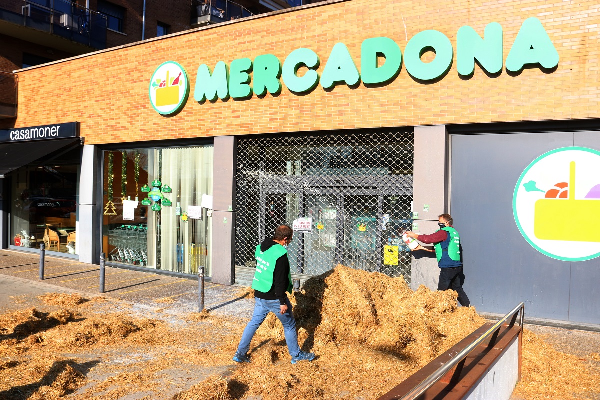 L’establiment, que ha hagut de tancar diverses vegades durant una estona amb els clients a dins, ha quedat bloquejat per la palla. Uns minuts més tard els pagesos han intentat portar un tractor amb un tanc ple de llet per llançar-la de nou contra la façana de l’establiment.