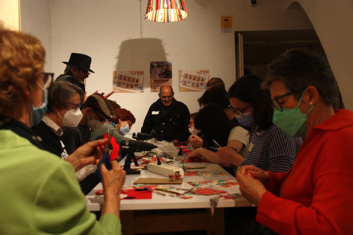 El punt de trobada és el taller del carrer Ample de Barcelona, on fins avui 22 d’abril els participants han fet les seves pròpies roses de paper, tela o cartó, ajudats per alguns dels usuaris d’Arrels. Tal com explica Donlo, es tracta d’una proposta que ja es porta fent uns anys i que té un valor “sentimental” a banda del més “econòmic”. “Manufacturar al costat de la gent al taller, veure com es fan les roses que posteriorment la gent comprarà i regalarà… aquest caliu no té preu”, afegeix.