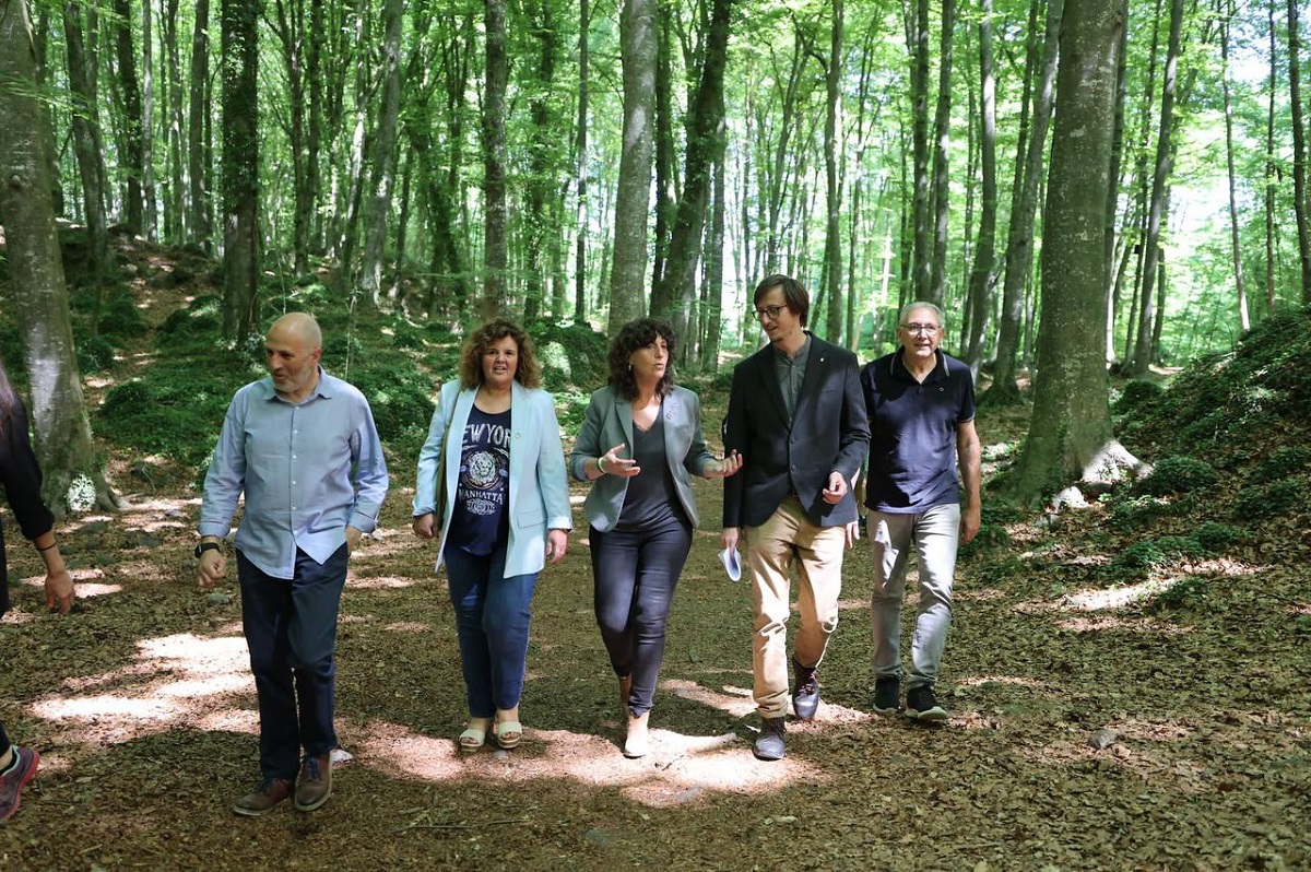 La consellera d’Acció Climàtica, Alimentació i Agenda Rural, Teresa Jordà i Roura, acompanyada de la secretària d’Acció Climàtica, Anna Barnadas, i del director general de Polítiques Ambientals i Medi Natural, Marc Vilahur, ha presentat aquest passat divendres a la Fageda d’en Jordà el full de ruta del Govern en matèria de biodiversitat.