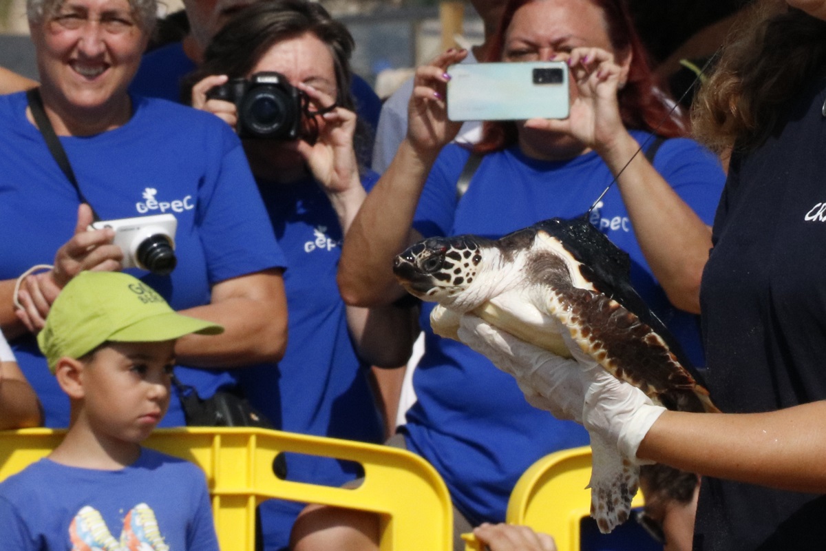L’alliberament s’ha fet a les deu del matí per evitar les altes temperatures, en plena onada de calor. “A les tortugues els molesta la llum solar, però la sorra estava una mica humida i han anat totes directes cap al mar”, detalla Lucía Garrido, veterinària i responsable de l’àrea de clínica i rescat de la fundació CRAM, un dels centres de recuperació on s’ha tingut cura de les tortugues en captivitat en el darrer any, junt amb l’Oceanogràfic, Palma Aquàrium i Limia.