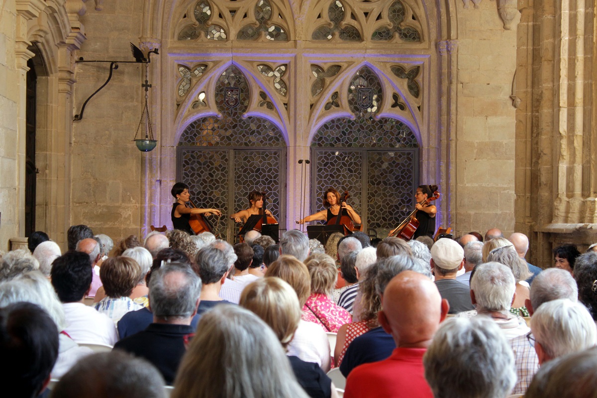 El cicle de música La Pedra Parla ha tancat aquest diumenge la seva setena edició amb èxit de participació, ja que en els tres concerts, el de diumenge i els dos de dissabte, s’han exhaurit les entrades. El certamen, que ha tingut lloc al Reial Monestir de Santa Maria de Vallbona de les Monges (Urgell), va arrencar dissabte amb les guitarres d’Enrike Solinís, ‘Ars Lachrimae’, amb obres de Bach, Dowland, Mudarra o Vissé, entre altres, i l’òpera ‘Acis i Galatea’ de Händel, i aquest diumenge ha conclòs amb el quartet de violoncels Les Mademoicelli. A més, els concerts de dissabte han permès descobrir el Pati dels Horts, una part del monument que habitualment no és accessible a les persones visitants.