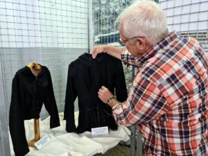 Entre les peces originals que s’exposen, destaca un sac, peça de vestir femenina que correspondria a l’actual jaqueta, datat sobre el 1900, i fet amb llana fina merina. Procedeix de casa Antema de la Plana de Mont-ros i possiblement el va fer servir una repadrina en el seu casament. Destacar també, la capa de cerimònia, feta amb drap de llana negra, que es feia servir durant les celebracions (batejos, missa del gall…). Prové de casa Benet de Castell-estaó.