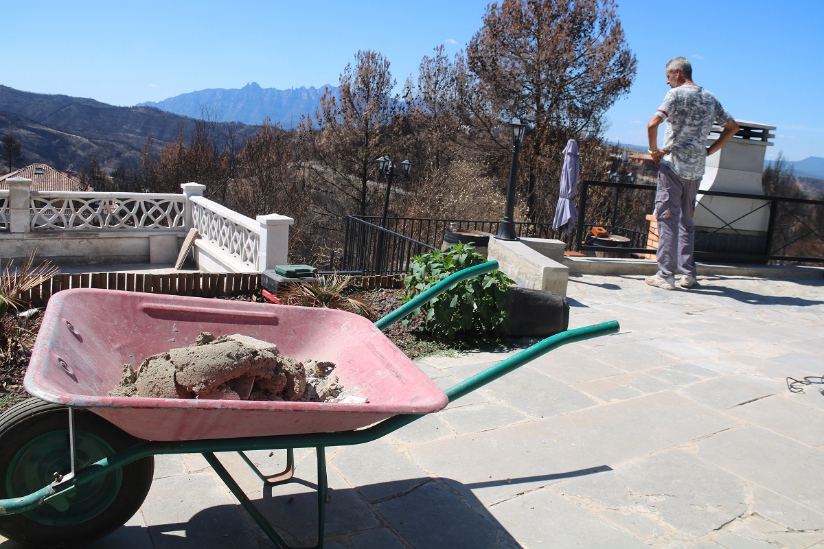 El que més els preocupava era garantir l’assistència i l’allotjament als afectats i en especial a les 47 famílies que van patir danys als habitatges per les flames. D’aquestes, 19 tenen una afectació total. Al cap de pocs dies ja es va poder restablir l’aigua i la llum i es van abordar les diferents situacions de reallotjament a aquells que ho necessitaven. Ara queda pendent “reprendre una certa normalitat”. La imatge del paisatge cremat els recorda a diari la tragèdia i, segons afirma l’alcalde, voldrien poder avançar el temps per tornar-lo a tenir verd com abans. Explica que la Diputació de Barcelona ja està redactant un projecte de recuperació de l’espai que haurà de comptar també amb la complicitat dels propietaris dels terrenys cremats. “Hi ha molta feina i serà un procés llarg”, admet.
