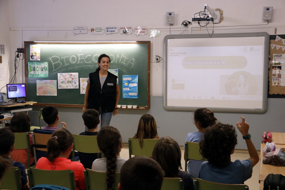 El tècnic del projecte, Joan Torrent, ha afegit que els tallers van a càrrec d’educadors ambientals que a partir d’un audiovisual expliquen els principals conceptes de la bioeconomia i quines opcions hi ha per millorar-la. Una d’aquestes educadores, la Mireia Betriu, ha estat l’encarregada de fer el taller a l’escola de Sant Martí de Riucorb (Urgell), i ha explicat que els alumnes més grans “dominen el tema” però quan s’aborden conceptes més concrets i els han d’explicar, sorgeixen més dubtes a l’hora de trobar la manera com fer-ho.