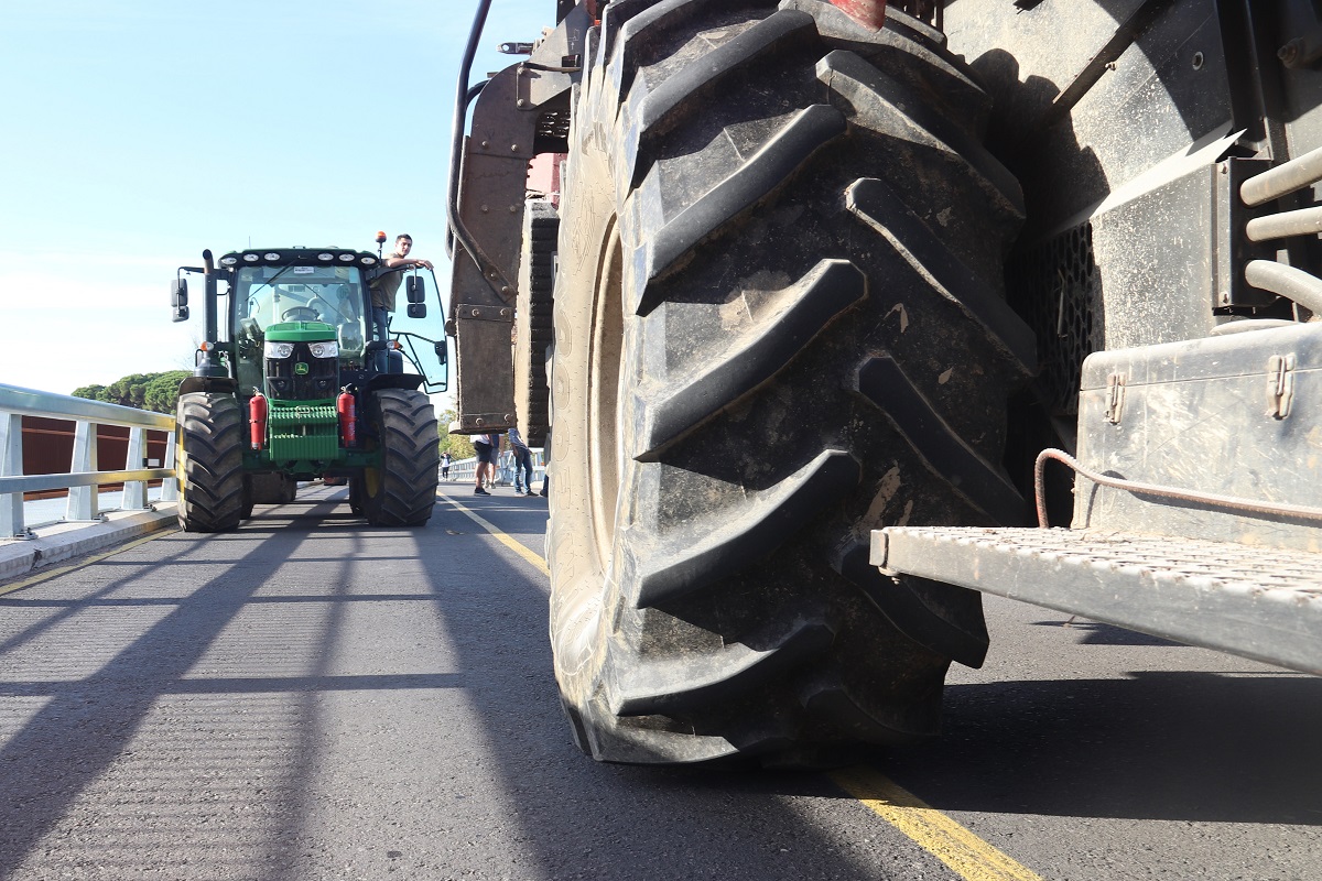 Els agricultors de Verges han protestat aquest dilluns al matí en contra de les obres que la Generalitat està fent al pont sobre el riu Ter a Verges. Es queixen que amb la reforma s’ha reduït la zona asfaltada i ara no poden creuar-lo amb els tractors perquè ocupen part del carril contrari. Les obres, que van començar a la primavera, incorporen un vial per a bicis i vianants en un costat de la infraestructura i un ampit per reforçar la seguretat als extrems dels carrils. Els agricultors asseguren que han perdut “gairebé un metre i mig” i per això no poden circular-hi. Des de Territori asseguren que ja han impulsat un estudi per veure si es pot ampliar el taulell del pont i tenir més metres en cada carril.