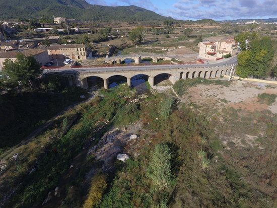 L’estructura medieval va aguantar la força de l’aigua -altres ponts de la comarca no van resistir-, però es va quedar sense baranes. Continua exactament igual, amb unes tanques de ferro per permetre la circulació de vianants. De cotxes encara no n’hi poden passar. A extrem i extrem del pont, habitatges apuntalats i murs a mig fer demostren que encara hi ha feina per fer.