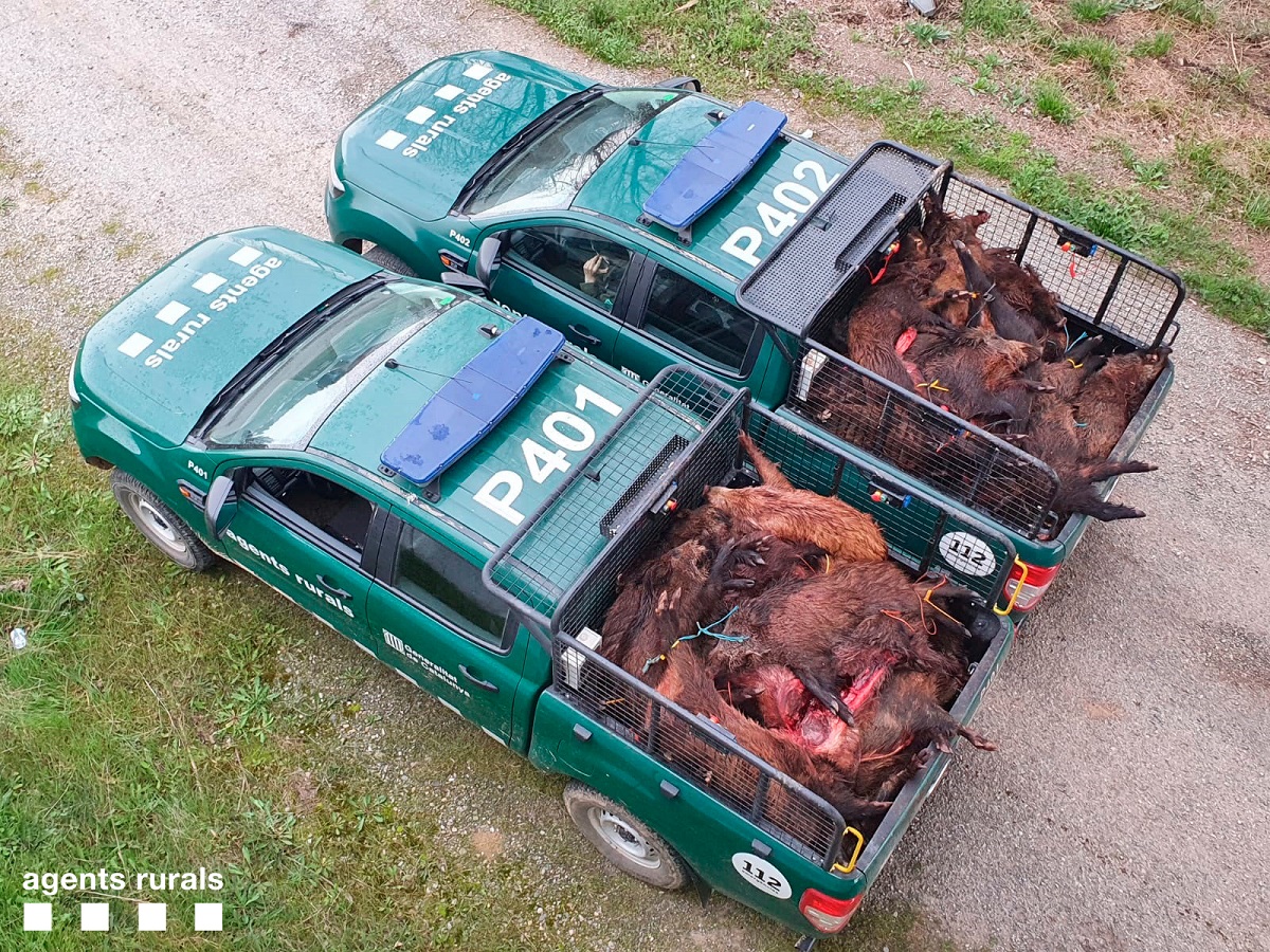 El Cos d’Agents Rurals ha comissat 45 exemplars i 1.940 quilograms de carn de senglar que incomplia la normativa de salut pública. Les peces de senglar les transportava un camió que ha estat interceptat a Ponts (Noguera) per agents de l’Àrea Regional de Lleida i un cop comissades s’han traslladat a una planta incineradora de residus orgànics per a la seva destrucció. Com a resultat de la inspecció, s’ha denunciat una empresa càrnica de la província de Sòria per incomplir el decret de recollida, transport, condicionament i comercialització de caça silvestre. Segons les dades recollides pels agents, l’empresa hauria recollit les peces en diferents Àrees Privades de Caça (APC), iniciant la ruta a la Panadella (Anoia).