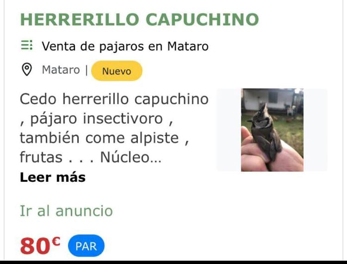 […] Read More Info here on that Topic: territorirural.cat/els-agents-rurals-denuncien-una-persona-per-vendre-ocells-protegits-a-traves-dinternet/ […]