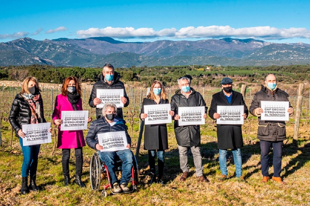 Els alcaldes i alcaldesses d’Agullana, Biure, Cantallops, Capmany, Espolla, la Jonquera, Rabós i Sant Climent Sescebes (Alt Empordà) s’han adherit al manifest de la IAEDEN-Salvem l’Empordà que reclama la redacció d’un pla comarcal de l’energia, la diversificació de fonts d’energia renovables i la participació ciutadana arran de l’allau de projectes a la comarca. L’entitat els va demanar que es posicionessin en relació a la problemàtica i els alcaldes han fet un pas més enllà fotografiant-se junts a Capmany, que té quatre propostes de projectes eòlics en tràmit. Tots ells porten una cartell on es pot llegir ‘Cap decisió d’esquenes al territori’.