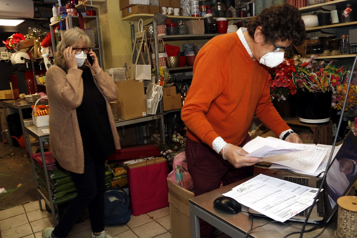 La necessitat de reforçar les mesures de seguretat per la covid-19 tampoc ha posat les coses fàcils a aquesta floristeria, ja que treballar amb la mascareta, els guants i les distàncies de seguretat “no és gens àgil”. A més a més, només hi ha disponible el 20% de la plantilla, ja que la resta estan en un ERTO. Pedrós ha explicat que han habilitat la zona d’atenció al públic per poder treballar amb més comoditat a l’hora de preparar les roses.