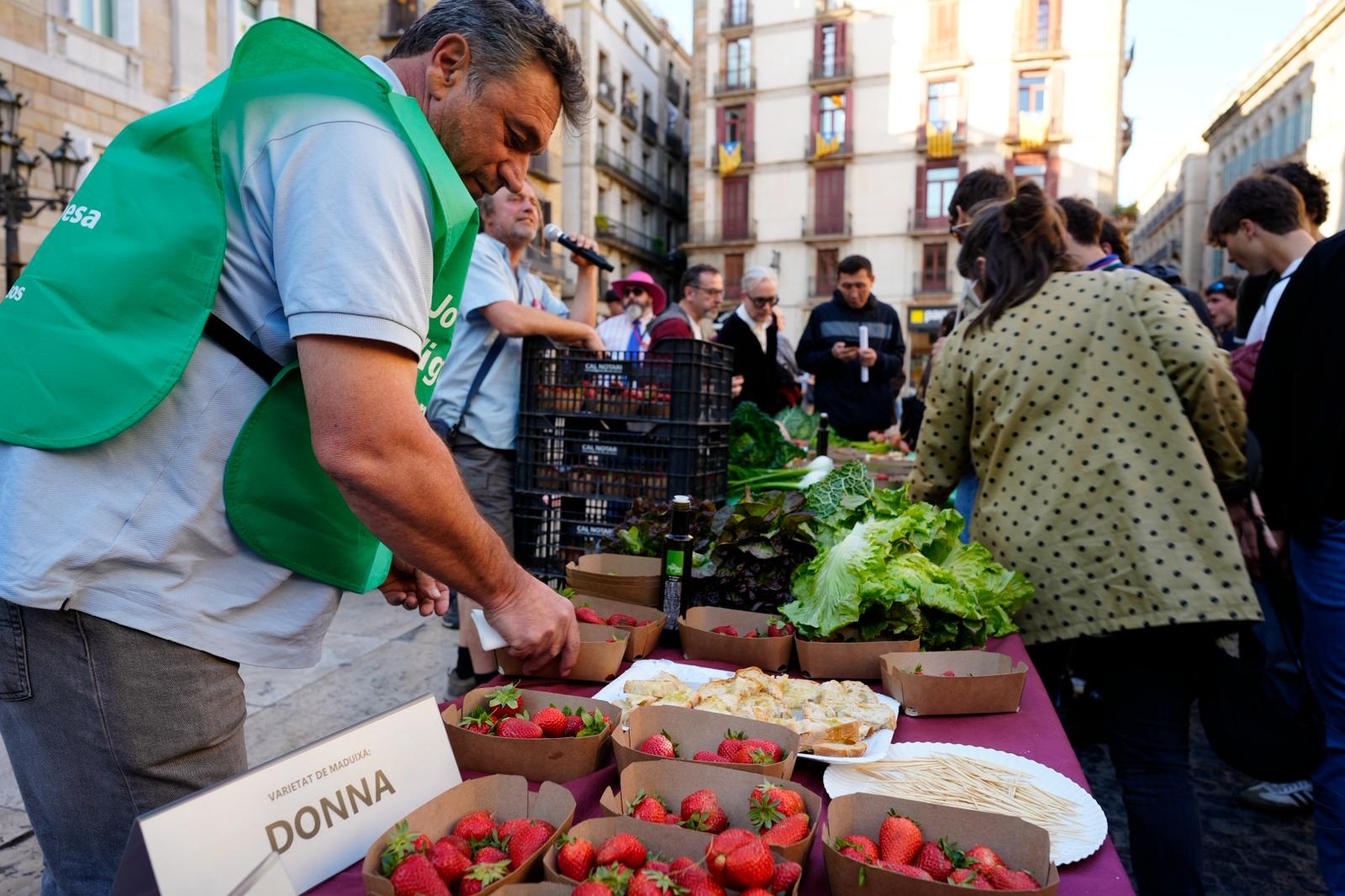 La manifestació, que ha culminat a la plaça de Sant Jaume amb un tast reivindicatiu de maduixes locals, ha posat sobre la taula demandes clares i urgents: