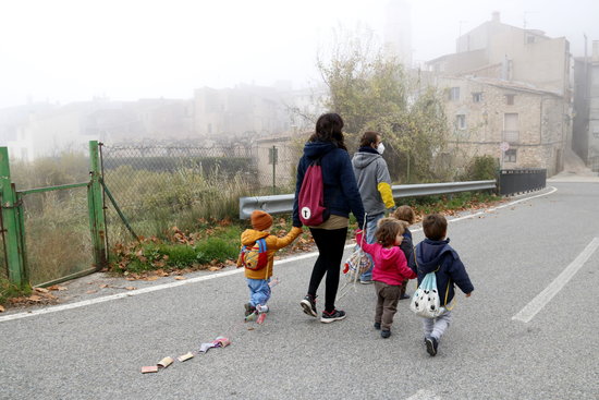 L’Alba i en Josep, pares d’en Falcó, són escaladors i es van enamorar del territori. Ara ja esperen un segon bebè. “Vam decidir portar el nostre fill en aquest espai familiar perquè li encanta relacionar-se amb altres nens”, explica l’Alba. Els pares d’en Ferran, d’arrels valencianes, també volien viure en un entorn rural. “Aquesta escoleta és un somni fet realitat”, subratlla en Blai, pare de la Duna. Porta vuit anys a Arbolí, al poble de la seva àvia, on es va instal·lar amb la seva dona “fugint” de la indústria petroquímica. “Anys enrere era impensable que Arbolí tingués un grup així de famílies i canalla per tirar endavant un projecte educatiu com aquest”, afegeix.