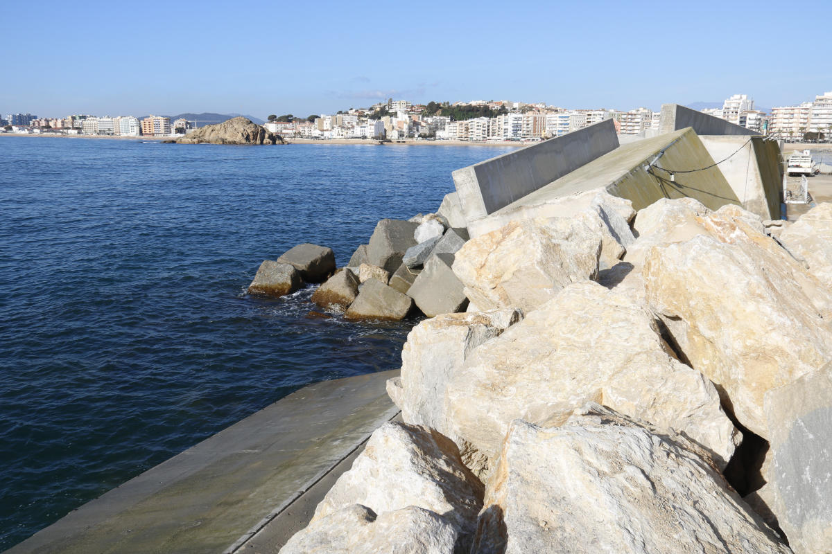 L’endemà que el temporal remetés, Ports ja va fer una primera actuació provisional per arranjar l’esvoranc de Blanes. En concret, es van posar peces d’escullera per tapar l’esvoranc i l’obertura de l’espatller.