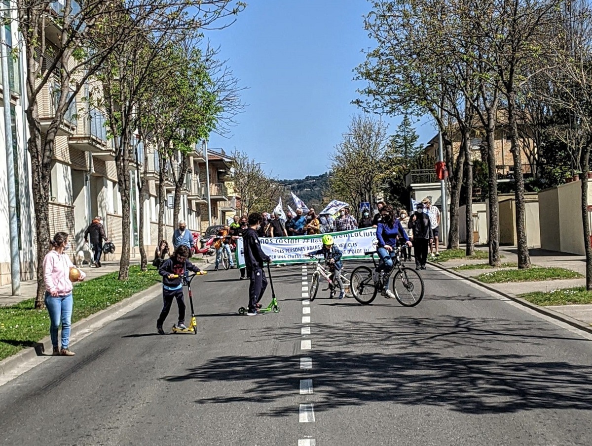 La plataforma ‘No és un vial, és un carrer’ ha tornat a tallar l’Avinguda Sant Jordi d’Olot fins a la carretera de la Canya aquest diumenge. Ho han fet per reclamar la construcció de la variant que permeti desviar el trànsit pesat que passa cada dia per davant de les seves cases. Coincidint amb la Setmana Santa, l’entitat ha escenificat un Via Crucis, per fer evident el seu malestar pel retard en la construcció d’una obra “que fa anys que hauria d’estar feta”. La protesta s’ha batejat ‘El Via Crucis de no és un vial’ i s’ha fet coincidint amb el segon aniversari de la plataforma. Com en la resta de talls que han fet han explicat el problema als veïns que passaven per la zona. Aquest diumenge han estat prop d’una setantena els participants.
