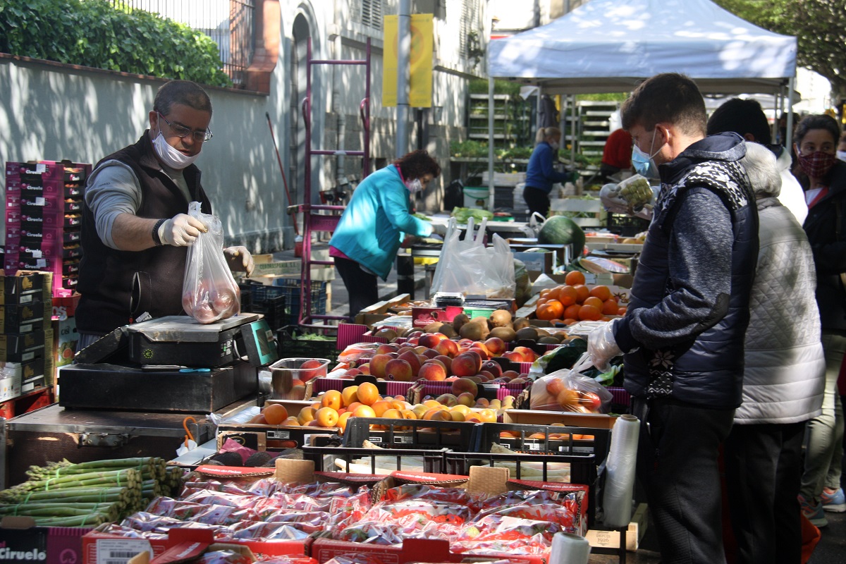 Les parades instal·lades entre la zona central del passeig Joan Brudieu i una de les calçades laterals estaven separades per una distància de més de dos metres a tots dos costats i de sis en la part en què quedaven enfrontades. Mentre, els clients havien de fer cua respectant també la separació requerida i només tocar els productes amb guants d’un sol ús facilitats pel venedor. Pel que fa a l’espai, s’ha definit prèviament un perímetre mitjançant la col·locació de cintes i tanques, per tal de regular-ne l’accés i que aquest només es pogués fer per determinats punts.