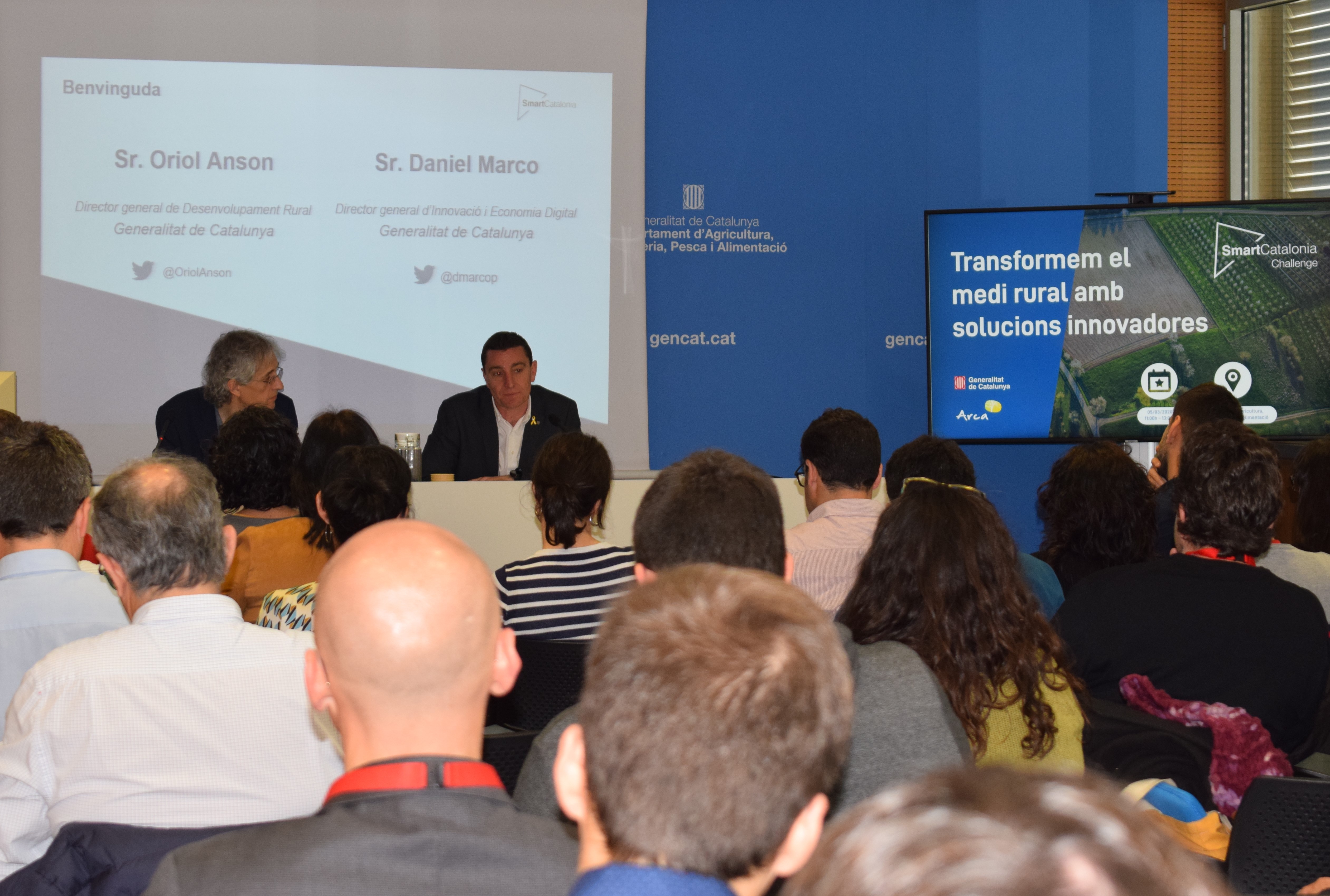 La Sala d’Actes del Departament d’Agricultura, Ramaderia, Pesca i Alimentació (DARP) ha acollit avui la presentació de reptes de la sisena edició de l’SmartCatalonia Challenge, el concurs d’innovació oberta promogut pel Departament de Polítiques Digitals i Administració Pública per incentivar les pimes i startups tecnològiques a crear solucions que donin resposta als reptes que plantegen municipis i entitats del país. En aquesta ocasió, el concurs surt per primer cop de l’àmbit urbà en què s’havia focalitzat fins ara per centrar-se en la transformació del medi rural mitjançant solucions tecnològiques innovadores.