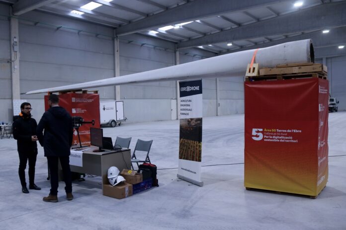 L’empresa ebrenca Ebredrone té en les inspeccions industrials d’aerogeneradors de centrals eòliques una de les seves principals sectors d’expansió. Un projecte que tenen en marxa des de fa més d’un any i mig i al qual han incorporat la tecnologia 5G. Ho han fet en el marc d’un acord amb la Fundació Mobile World Capital i el mateix CoEbreLab, on han dut a terme els assajos.