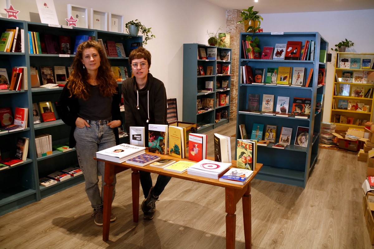 “Som una llibreria petita i ens agrada fer la selecció del catàleg, per tenir controlat què tenim i on ho tenim i poder recomanar a partir de les editorials que hem triat”, explica la Marta Barceló. Les estanteries, reciclades i donades per un institut de la ciutat, inclouen títols d’editorials independents i també algunes cooperatives, que “estan fora dels circuits més comercials”, segons les impulsores. Des de Periscopi, passant per Males Herbes o Pagès Editors, entre d’altres. El catàleg inclou sobretot narrativa catalana o traduccions al català, poesia, assaig i d’altres més específiques com ara feminisme.