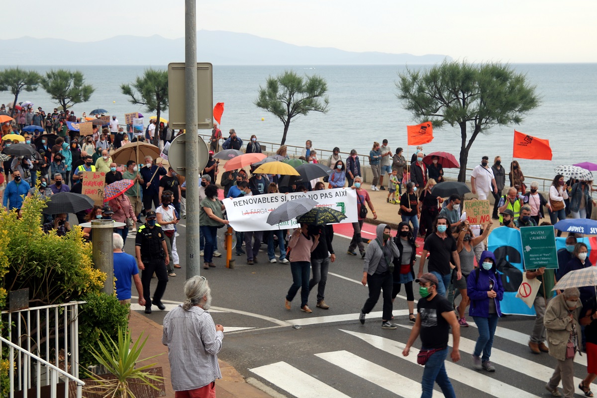 Més de 500 persones s’han manifestat a l’Escala (Alt Empordà) malgrat la pluja per reclamar un model de renovables que no trinxi el territori ni doni l’esquena al paisatge. Darrere la pancarta ‘No pas així’ amb la imatge d’un aerogenerador, s’hi han aplegat fins a una quarantena d’entitats ecologistes, ajuntaments i sectors econòmics de comarques gironines (com pagesia, pescadors i càmpings). La protesta ha recorregut el passeig marítim del municipi, i tot i que el ruixat ha estroncat l’acte final, la manifestació ha permès palpar el malestar que hi ha a la demarcació contra el parc eòlic marí al golf de Roses, els projectes per instal·lar molins a l’Albera o els dels parcs solars que es volen implantar a cavall de l’Empordà i el Gironès.
