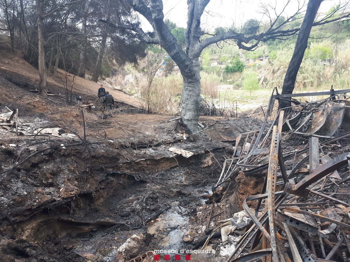 Gràcies a les dades dels testimonis i dels vestigis recollits, els agents van aconseguir ubicar l’àrea d’inici i concloure que la causa va ser una foguera per escalfar aigua, feta en una de les barraques cremades.
