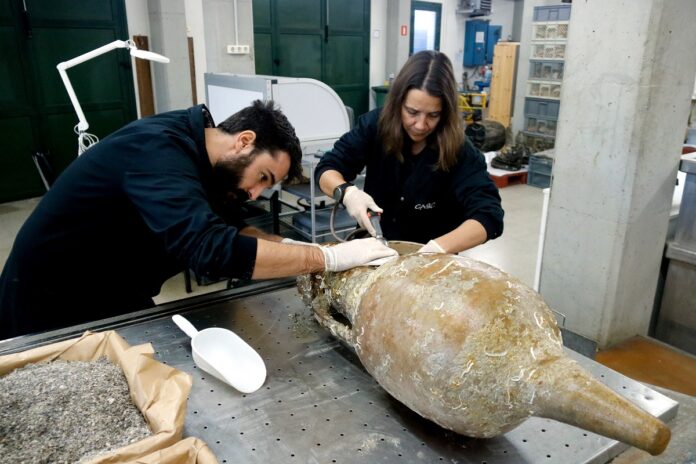 Amb moneda o sense, durant aquella tempesta els déus no van ser propicis i el vaixell va acabar enfonsant-se. Però ara, 2.000 anys després, les restes d’aquell naufragi tornen a ressorgir. A les àmfores que els arqueòlegs del CASC ja havien recuperat del fons del mar, en aquesta última campanya n’hi han afegides 25 més de completes (deixant de banda els fragments que també han extret de les profunditats).