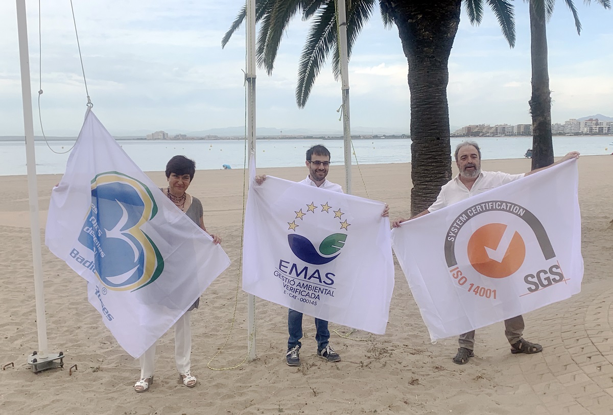 Dimecres, l’alcalde de Roses, Joan Plana, el regidor de Medi Ambient, Francesc Giner, i la regidora de Turisme, Montse Mindan, han hissat les banderes EMAS, ISO 14001 i Badies més belles del món al passeig Marítim de la població.