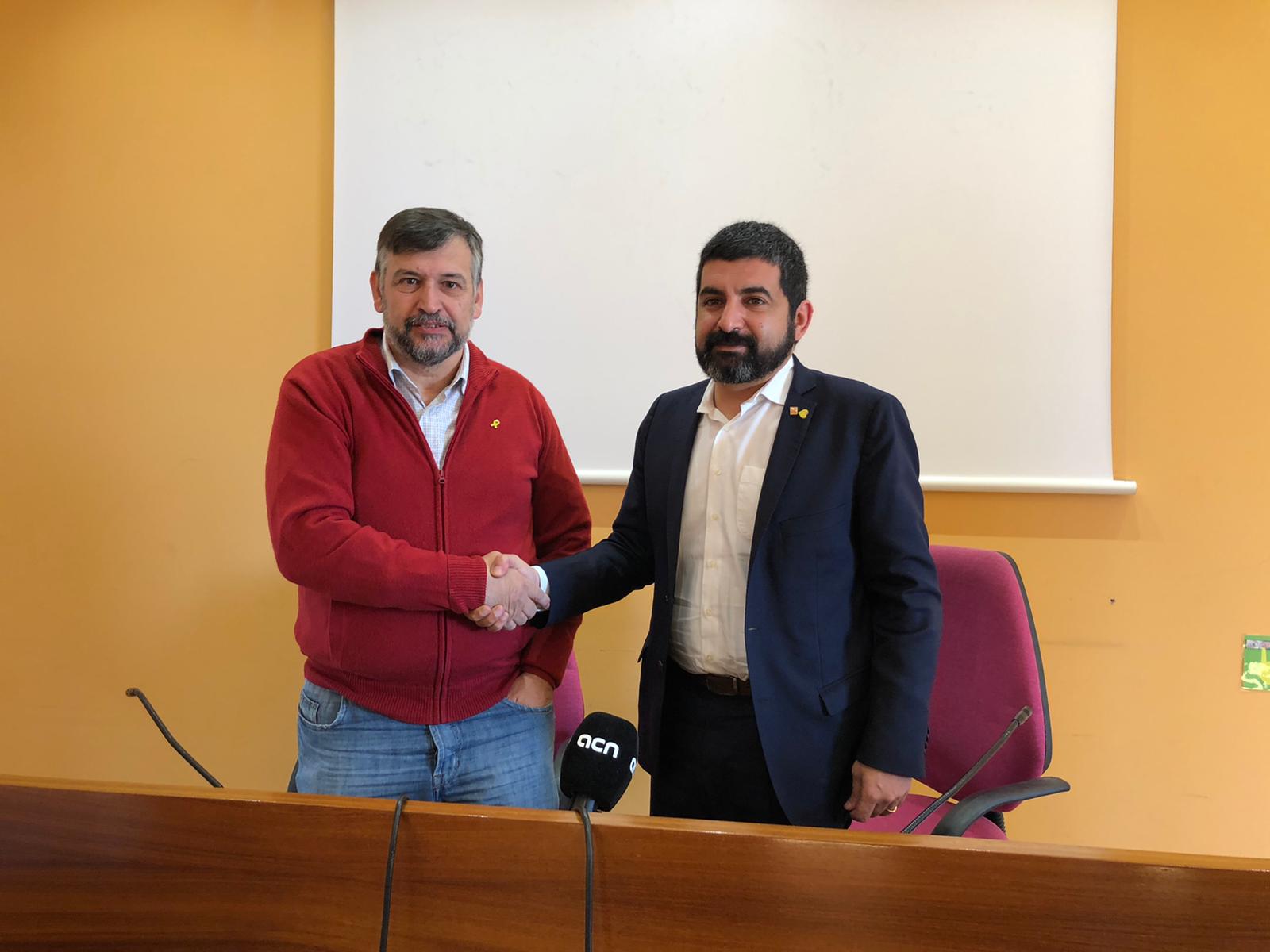 El conseller de Treball, Afers Socials i Família, Chakir el Homrani; el coordinador nacional d’Unió de Pagesos, Joan Caball, i el responsable del sector social de la Comissió Permanent Nacional del sindicat, Salomó Torres, han presentat aquest dimarts un conveni de col·laboració amb el Servei d’Ocupació de Catalunya amb la finalitat d’orientar i formar persones que vulguin treballar en el sector agrari.